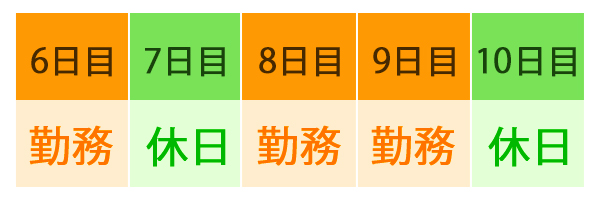 2日乗務し、1日休み、その後、2日乗務をというサイクルを繰返します。1勤務の最長時間は(任意就労時間も含む)15時間未満です。これは必ず守っていただきます。また、勤務が続く場合は、前日の勤務終了から翌日の始業時間までに9時間以上を空けなければ乗務できません。